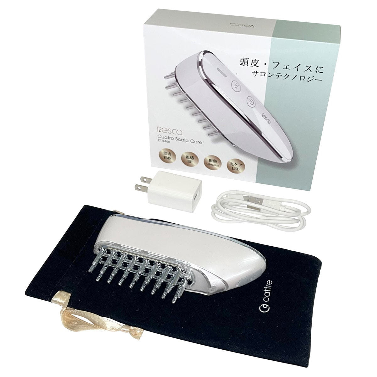レスカ クアトロスカルプケアは、サロン施術で使用される頭皮ケアやフェイシャルケアのテクノロジーを1台に集結した、本格的な頭皮電気ブラシとフェイシャルの美容機器です。